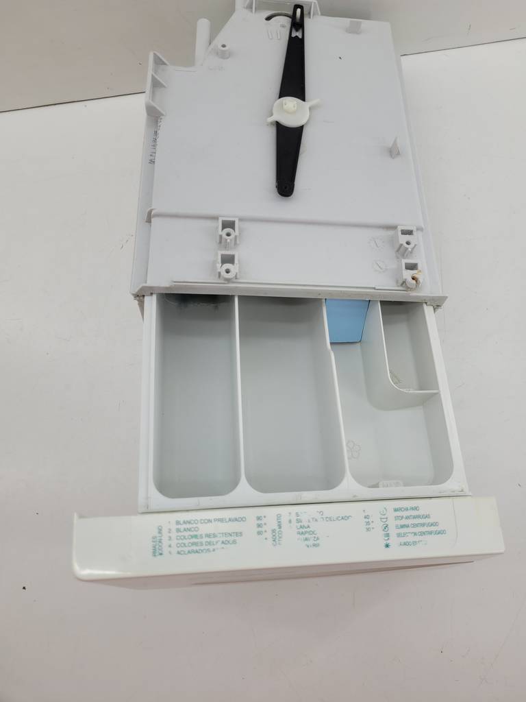 Cajetín del detergente y suavizante para la lavadora de la marca Aspes modelo Ideal LA 363. En su interior tiene 4 compartimentos diferentes. Se encuentra en buenas condiciones.