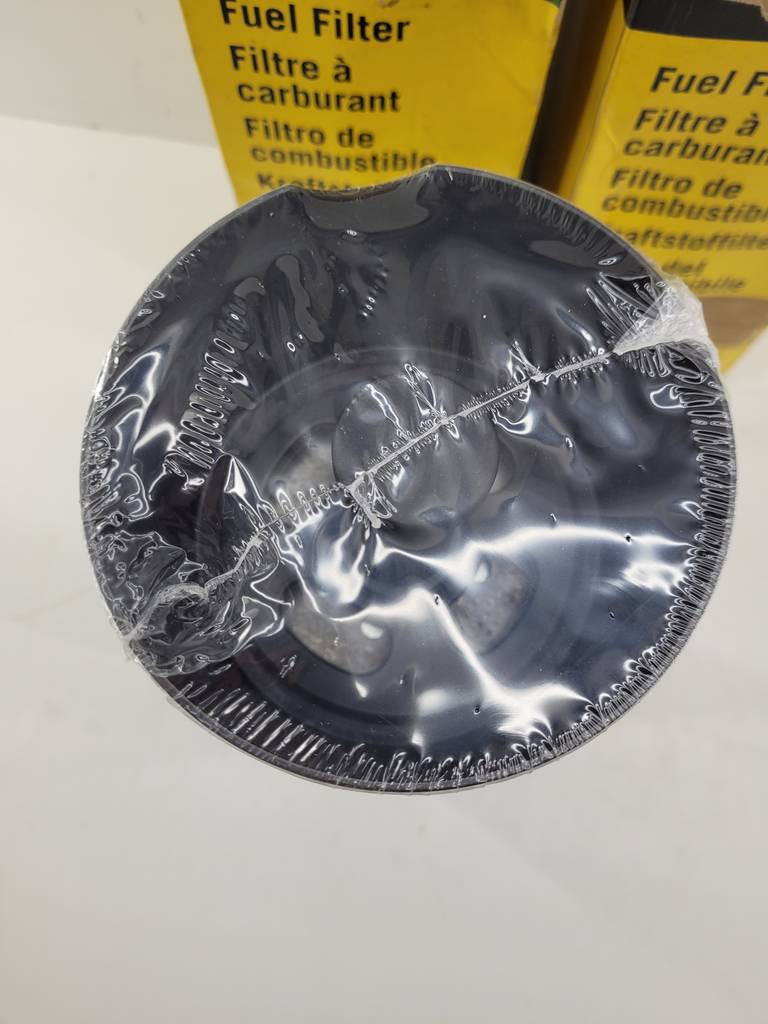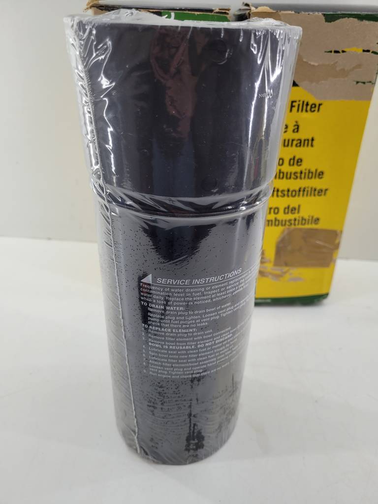 Filtro de combustible original de la marca John Deer que se encuentra precintado y listo para ser colocado.