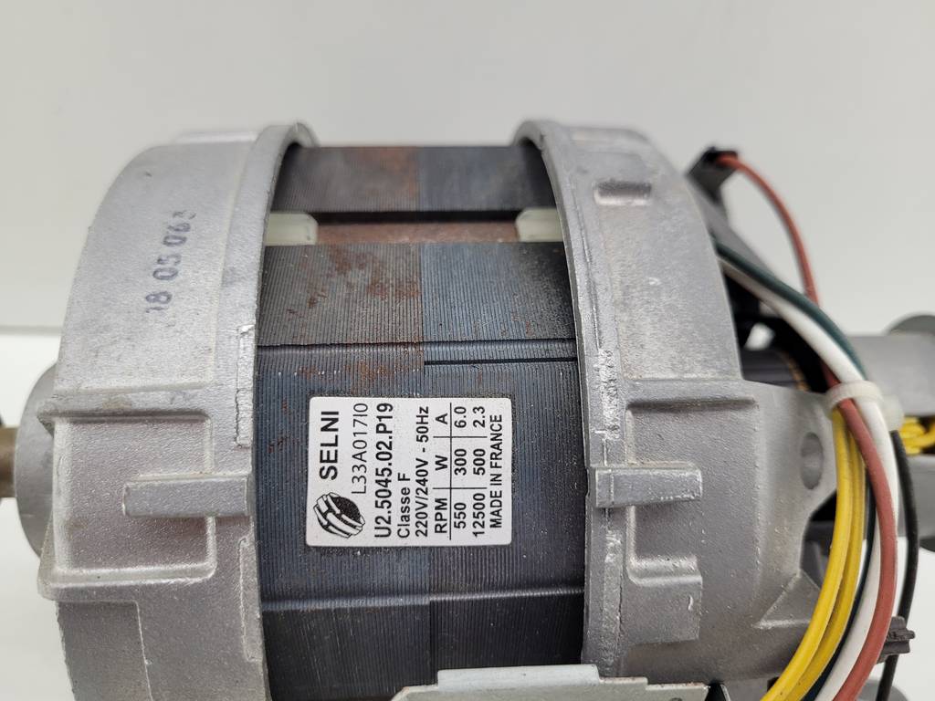 Motor de lavadora de la marca Selni modelo U2.5045.02.P19 clase F para sustituir por uno en mal estado.