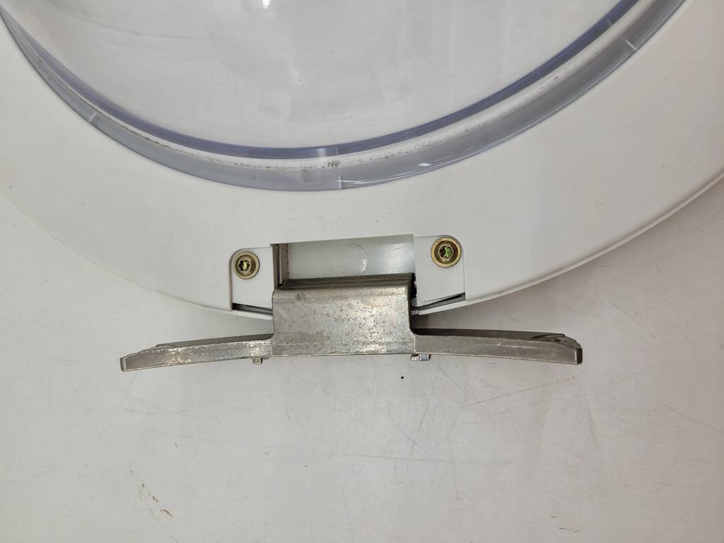 Puerta para lavadora completa en color blanco. Es para la lavadora marca Aspes modelo Ideal LA 36. Se encuentra en buenas condiciones y se entrega con el cierre completo y la bisagra.