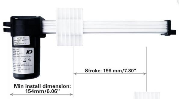 Reemplazo lineal de motor para sillas de elevación marca KD modelo KDPT005-144 (Linear Actuator Kit for Power Recliner Sofa Lift Chairs). Máxima carga 800N y velocidad 42mm/s. Se entrega con la barra de aluminio y también con el cableado que se ve en las fotografías con conexión USB.